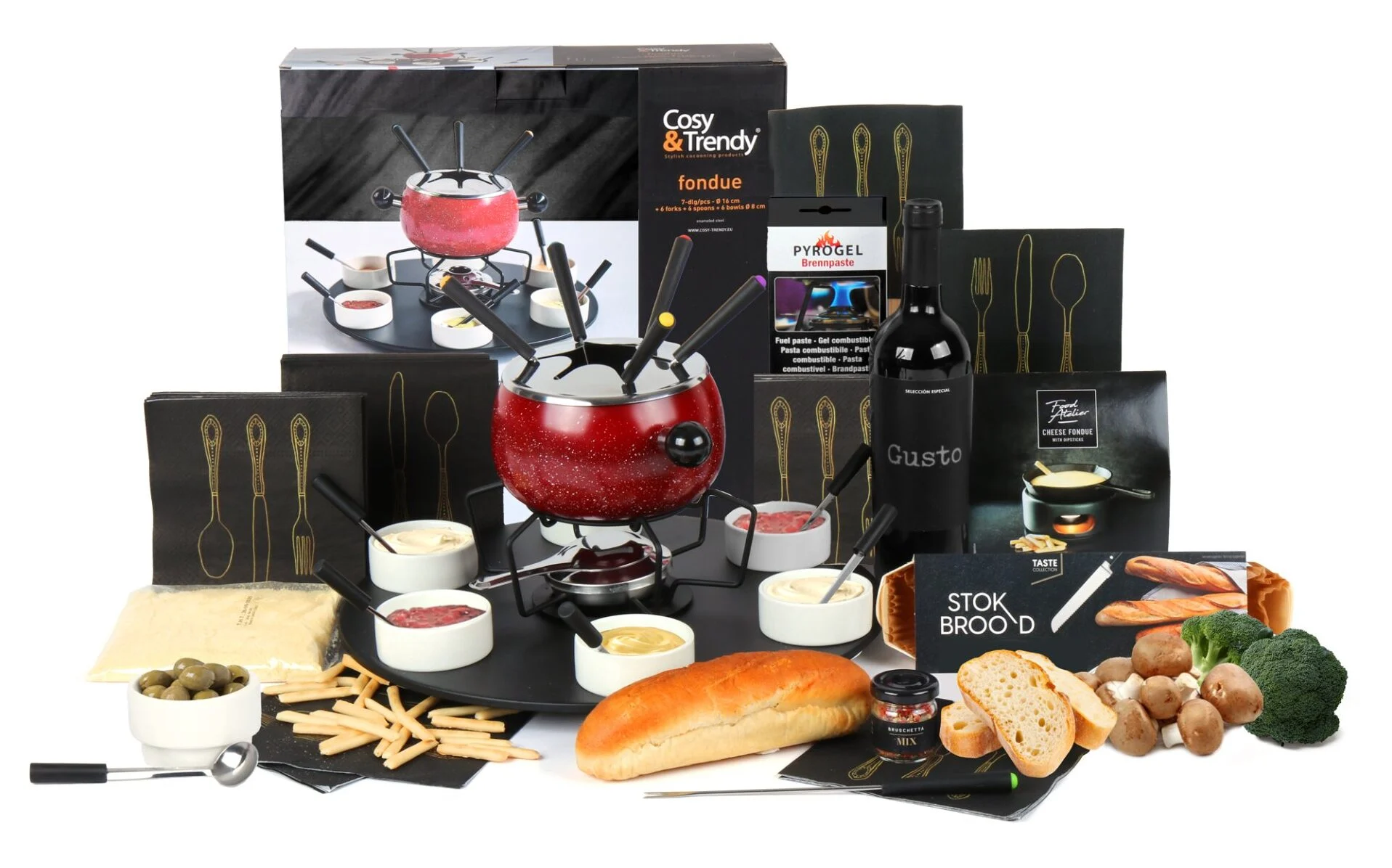 - Luxe Fondue ø 16 cm met 6 vorken en 6 schaaltjes op draaiplateau