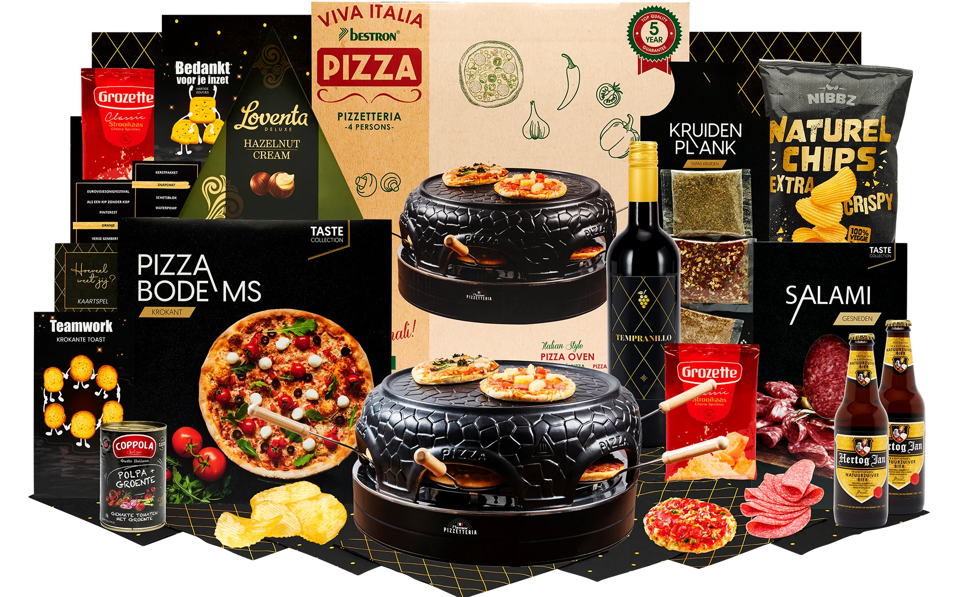 - Pizza oven 4p, 800w, incl. 4 spatels en deegvormer